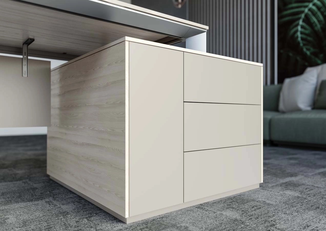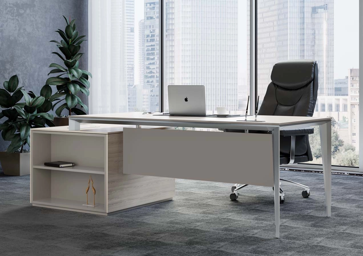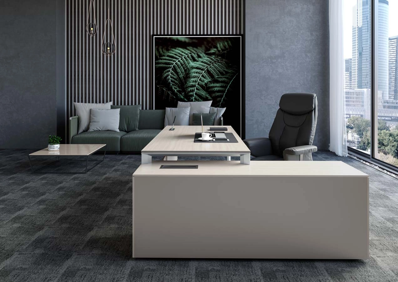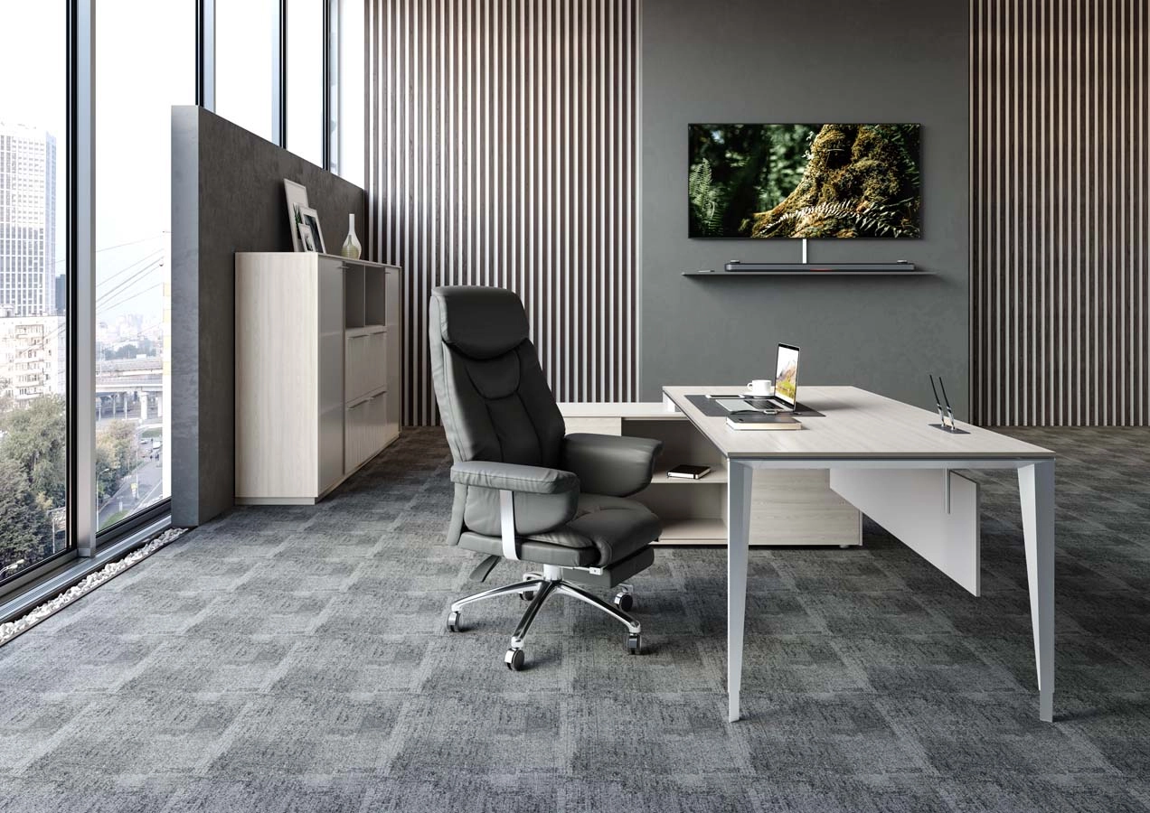 ATLAS — это уникальное сочетание эстетической ценности, высокого качества и долговечности. Эргономичный и элегантный, этот продукт идеально подходит для руководителей. Вся мебель выполнена в спокойных тонах, что придаёт интерьеру изящество.