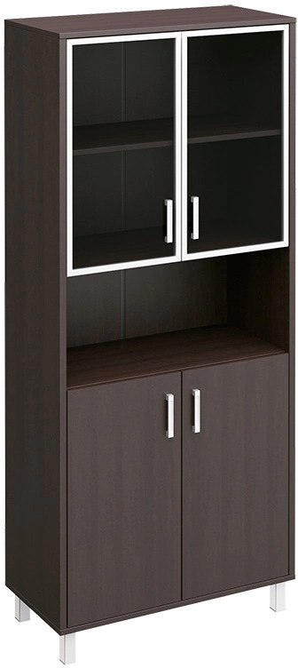 Шкаф для документов двери стеклянные в алюминиевой рамке + ДСП без замка + ниша Born Unitex В 430-823