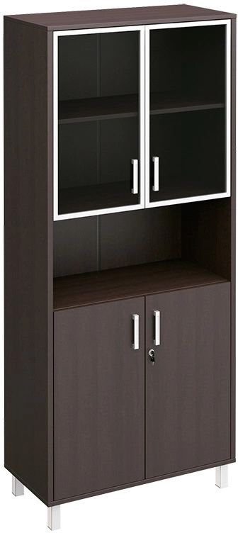 Шкаф для документов двери стеклянные в алюминиевой рамке + ДСП с замком + ниша Born Unitex В 430-823-1