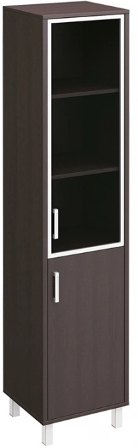 - В шкафу применены стеклянная дверь и дверь из ЛДСтП без замка, установленные на правую боковину шкафа