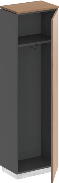 - Шкаф укомплектован фиксированной по высоте полкой под головные уборы с выдвижной штангой для одежды