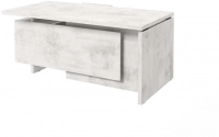 Стол с опорной тумбой: столешница, бок стола и бок тумбы выполнены из ЛДСП 38 мм Орех Пацифик Табак или Древесина Графит, кромка 2мм. Между боком стола и столешницей установлены металлические проставки, цвет “нержавеющая сталь” или "черный" Щит на лицевой части стола - лакированная плита МДФ (ЛМДФ) с высокоглянцевой поверхностью 18 мм Камень Пьетра Гриджиа черный или Мрамор Леванто белый, кромка 1 мм; Опорная тумба: высота 608 мм, глубина 482 мм. Имеет отсек с 2 ящиками, и 2 открытые ниши. В верх тумбы для возможности вывода проводов встроен черный лючок 160х80. Каркасы ящиков изготовлены из ЛДСП Антрацит 16 мм. Ящики установлены на направляющие скрытого монтажа частичного выдвижения с функцией самозакрывания. Фасады ящиков изготавливаются из ЛДСП 18 мм в цветах Орех Пацифик Табак , Древесина Графит или ЛМДФ в цветах Камень Пьетра Гриджиа черный, Мрамор Леванто белый. Кромка на плите ЛДСП 0,8 мм, на плите ЛМДФ 1 мм. Ручки металлические с межцентровым расстоянием 160 мм, цвет “нержавеющая сталь” или "черный". Крепление столешниц разборное в металлические муфты, закрученные в столешницу. Опоры стола регулируемые металл/пластик черный. Регулировка до 15 мм.
