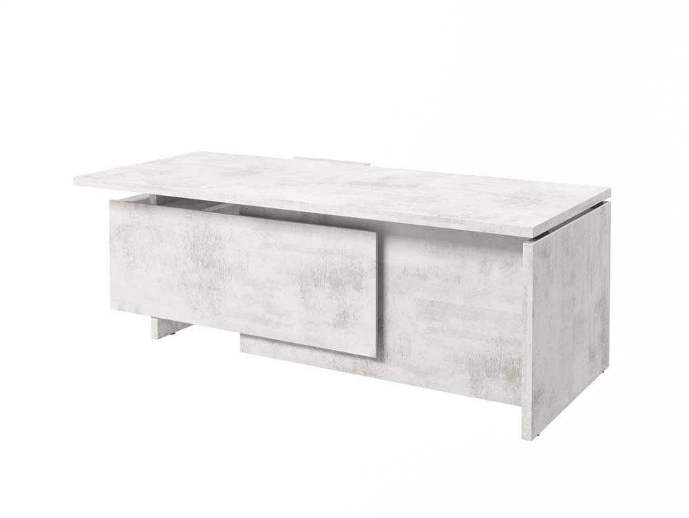 Стол с опорной тумбой: столешница, бок стола и бок тумбы выполнены из ЛДСП 38 мм Орех Пацифик Табак или Древесина Графит, кромка 2мм. Между боком стола и столешницей установлены металлические проставки, цвет “нержавеющая сталь” или "черный" Щит на лицевой части стола - лакированная плита МДФ (ЛМДФ) с высокоглянцевой поверхностью 18 мм Камень Пьетра Гриджиа черный или Мрамор Леванто белый, кромка 1 мм; Опорная тумба: высота 608 мм, глубина 482 мм. Имеет отсек с 2 ящиками, и 2 открытые ниши. В верх тумбы для возможности вывода проводов встроен черный лючок 160х80. Каркасы ящиков изготовлены из ЛДСП Антрацит 16 мм. Ящики установлены на направляющие скрытого монтажа частичного выдвижения с функцией самозакрывания. Фасады ящиков изготавливаются из ЛДСП 18 мм в цветах Орех Пацифик Табак , Древесина Графит или ЛМДФ в цветах Камень Пьетра Гриджиа черный, Мрамор Леванто белый. Кромка на плите ЛДСП 0,8 мм, на плите ЛМДФ 1 мм. Ручки металлические с межцентровым расстоянием 160 мм, цвет “нержавеющая сталь” или "черный". Крепление столешниц разборное в металлические муфты, закрученные в столешницу. Опоры стола регулируемые металл/пластик черный. Регулировка до 15 мм.