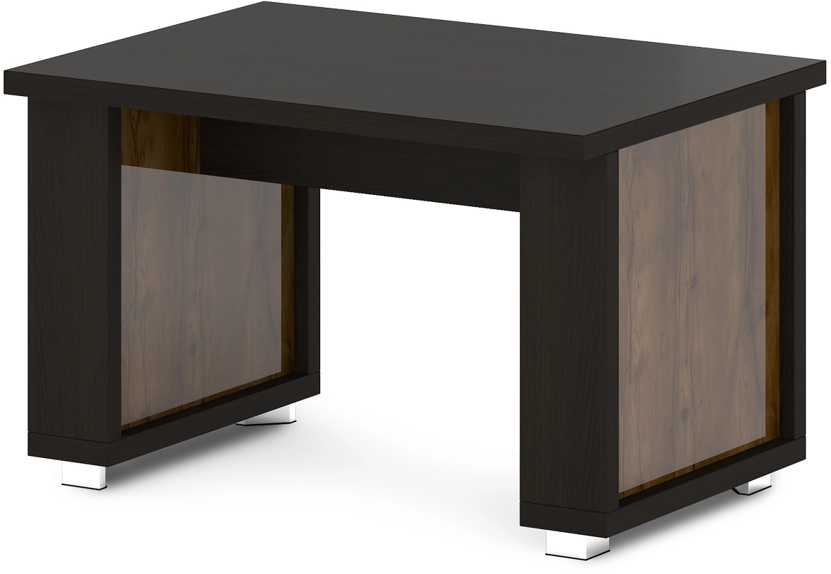 Столешница изготавливается из ЛДСП толщиной 43мм. Торцы столешницы облицованы кромкой ABS толщиной 2 мм в цвет плиты. Соединительный щит – ЛДСП 18мм, торцы облицованы кромкой ABS толщиной 2 мм в цвет плиты. Каркасы сборных опор изготавливаются из ЛДСП 43 мм, торцы облицованы кромкой ABS толщиной 2 мм по всему периметру в цвет плиты. Внутреннее наполнение сборных опор – 2 щита из ЛДСП 18 мм с лаковым покрытием. Каждая сборная опора установлена на 2-х регулируемых опорах размером 80х80х48. Опоры 5-угольной формы, черные пластиковые, с металлической накладкой по периметру, покрытие «Хром блестящий».