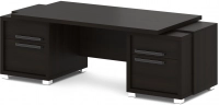 Стол руководителя с двумя тумбами. Тумбы имеют по 3 ящика (2 внешних и 1 внутренний) на шариковых направляющих скрытого монтажа полного выдвижения, обладающих плавным ходом и оборудованных доводчиками.