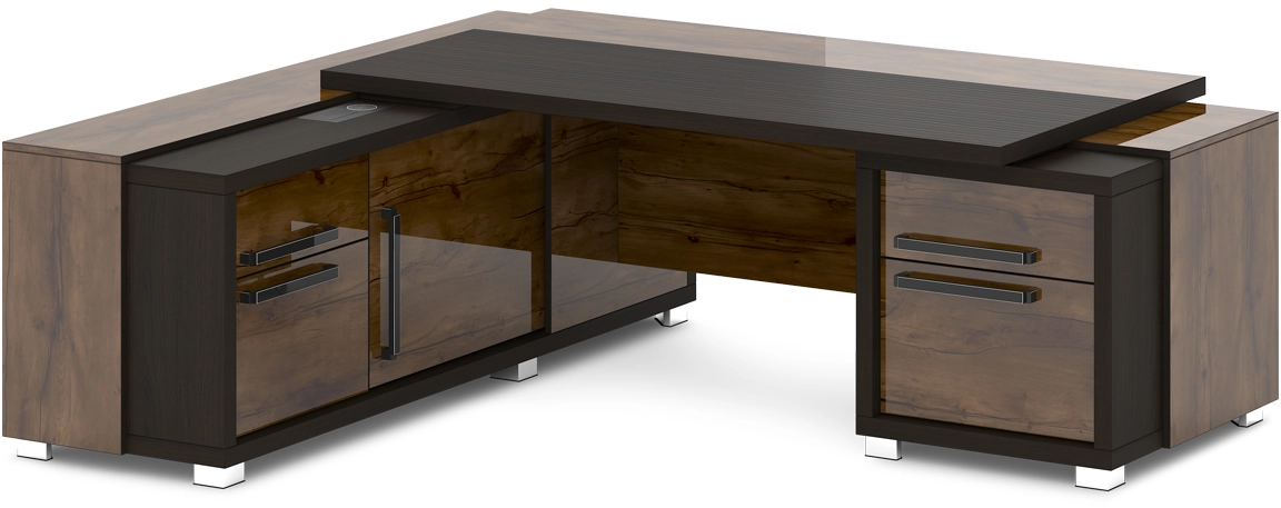 Стол руководителя с тумбой и греденцией (с блоком розеток) Grace L-18 пр/л