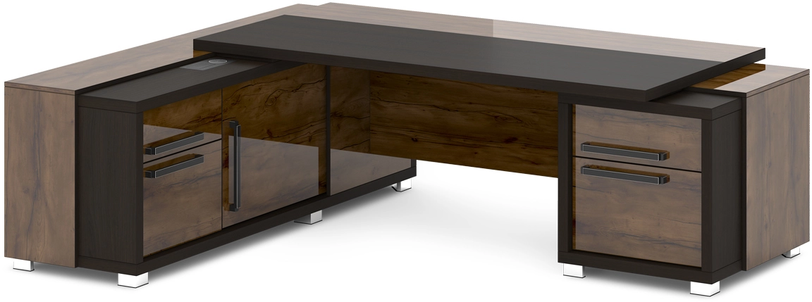 Стол руководителя с тумбой и греденцией (с блоком розеток) Grace L-20 пр/л