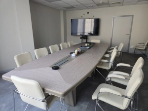 Переговорные столы New.Tone , натуральный шпон ореха и отделка опор из эко-кожи. г. Москва, Инновационный центр «Сколково»