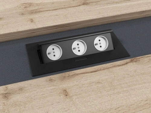 Центральная вставка стола переговора с блоком розеток. Блок выдвижной. Открывается нажатием кнопки на корпусе. В блоке располагаются 3 розетки по 220 В
