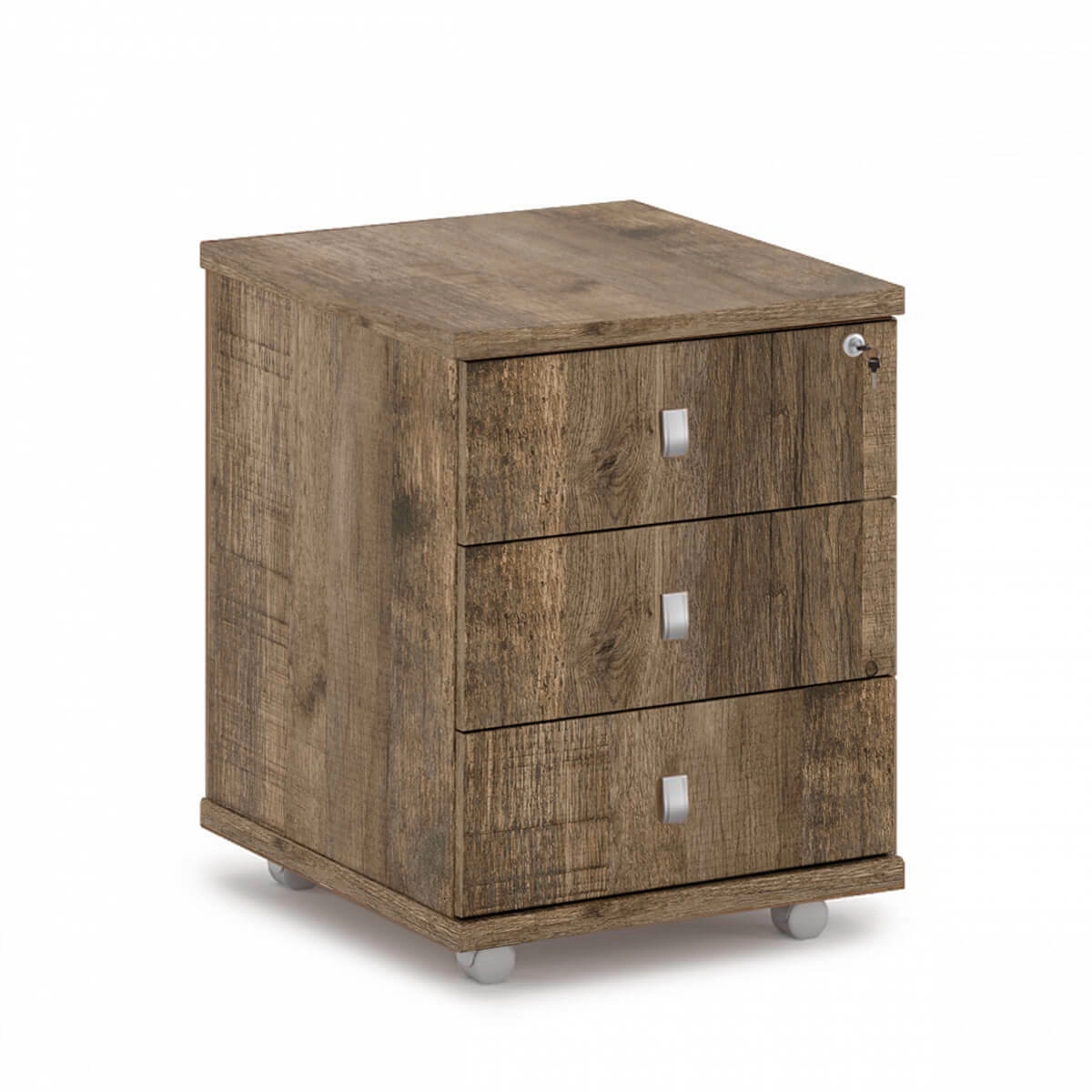 Тумба подкатная с тремя ящиками, центральным замком и системой метабоксов производства Hettich (Германия). Топ и дно выполнены из плиты толщиной 25 мм. Кромка крышки и дна по периметру - ПВХ 2мм, Кромки остальных срезов - ПВХ 0,4 мм. Боковые стенки и задняя стенка выполнены из ЛДСП толщиной 16 мм. Три ящика системы "Метабокс" частичного выдвижения. Каркас ящика изготовлен из стали толщиной 1,5 мм, покрытой высокопрочной эмалью. Внешний размер ящика: ширина 386 мм, глубина 450 мм высота 86 мм Фасады и дно ящиков выполнены из ЛДСП толщиной 16 мм, в тон каркаса тумбы. Нагрузка на ящик (направляющие) - 30 кг. Замок - центральный. Ручка – кнопка с поднимающимся язычком, размером 15 мм х 30 мм. Материал - цинковое литье, цвет - хром матовый. Опоры колесные, диаметр 50 мм, высота 62 мм. Материал - пластик серый.