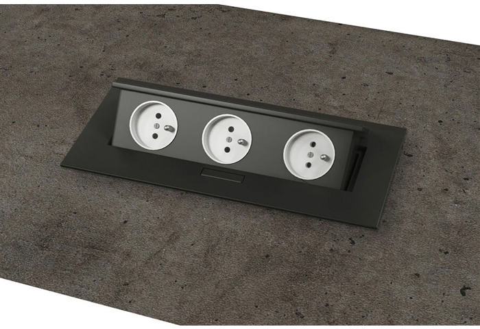 Центральная вставка стола переговоров с блоком розеток. Блок выдвижной. Открывается нажатием кнопки на корпусе. В блоке располагаются 3 розетки по 220 В. Цвет - Бетон Чикаго. Предназначена для столов Z-201 и Z-202.