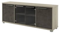 Шкаф низкий. Две распашные двери ЛДСП, две стеклянные двери. Внутри каждого отсека полка с возможностью установки на разную высоту. Каркас шкафа выполнен из ЛДСП 18 мм. Кромка ABS 2 мм. Фасады выполнены из ЛДСП 18 мм, кромка ABS 2 мм. На дверях петли со встроенным демпфером для наиболее комфортного закрывания дверей. Уникальная функция самозакрывания срабатывает даже с широкого угла - дверь закрывается как будто сама. Ручки металлические с межцентровым расстоянием 320 мм, цвет "нержавеющая сталь". Опоры регулируемые металл/пластик. Регулировка до 15 мм. Накладка металлическая, цвет "нержавеющая сталь".
