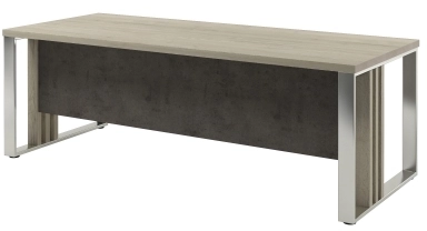 ДАННАЯ ПОЗИЦИЯ ИЗГОТАВЛИВАЕТСЯ ПОД ЗАКАЗ. Стол руководителя прямой на металлических опорах. На коротких торцах столешницы кромка поперечная, на остальных элементах продольная. Опора из профильной трубы из нержавеющей стали сечением 80*20. Соединительный щит - ЛДСП 18 мм цвет Бетон Чикаго.