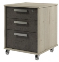 Тумба подкатная, 3 ящика. На первом ящике замок. Каркас тумбы выполнен из ЛДСП 18 мм, кромка ABS 2 мм. Фасады из ЛДСП 18 мм Бетон Чикаго, кромка ABS 2 мм. Ящики со стильными металлическими боковинами производства Hettich и системой плавного закрывания с доводчиками. Ручки металлические с межцентровым расстоянием 320 мм, цвет "нержавеющая сталь". На двери петли с доводчиком. Колесные опоры из прозрачного силикона.