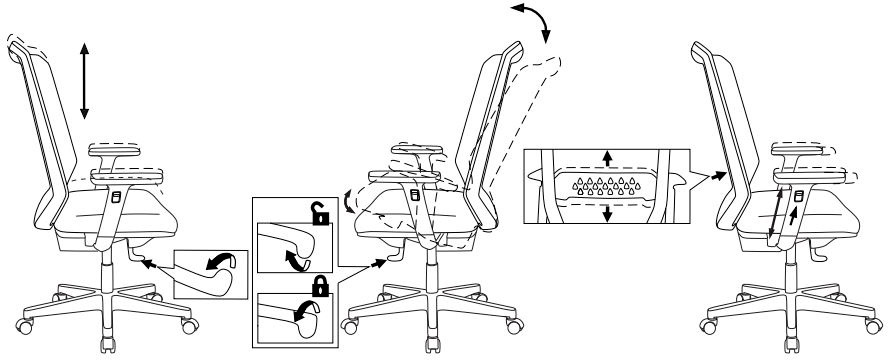 Синхромеханизм качания с регулировкой под вес и возможностью фиксации в нескольких положениях