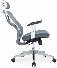 Суперсовременное кресло, выполненное с учетом новейших дизайнерских тенденций. Анатомический дизайн спинки и поясничного упора. Наполнение - memory foam. Регулируемый подголовник. Регулируемые Т-образные подлокотники с мягкой накладкой. Крестовина - высокопрочный пластик. Механизм качания - мультиблок с возможностью фиксации в любом положении. Слайдер. «Прорезиненные» ролики..Максимальная нагрузка 120 кг.