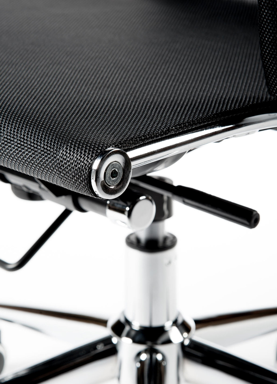 Подлокотники: металлические хромированные с накладками из сетки на молнии