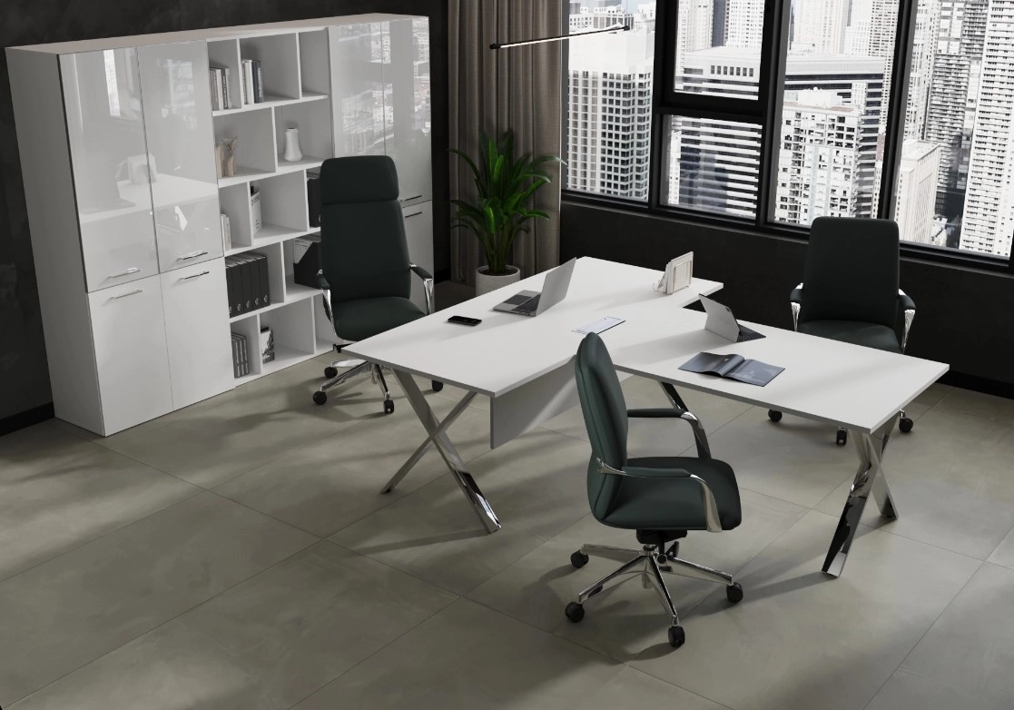 Компания Рабочее место представляет новинку — кабинет руководителя CROSS. Это практичное, функциональное и стильное решение для современного офиса. Кабинет выполнен в минималистичном дизайне, что позволяет ему легко вписаться в любой интерьер.