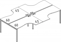 Рабочая станция со столами эргономичными "Классика"на металлокаркасе DUE (4х140) А4 Б2 181-2