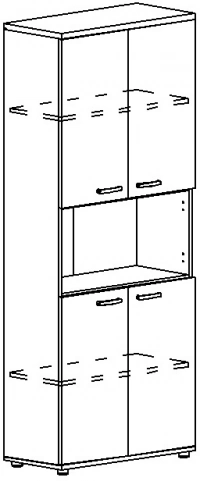 Шкаф для документов 4-дверный с открытой нишей ALBERO А4 9374