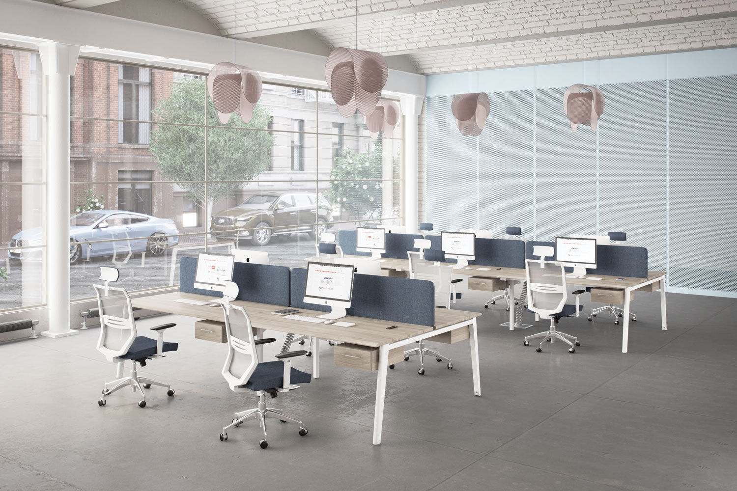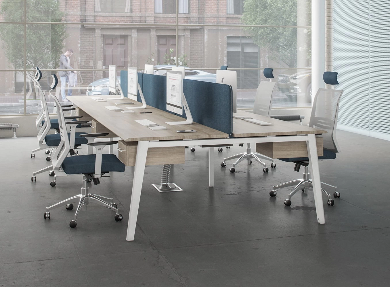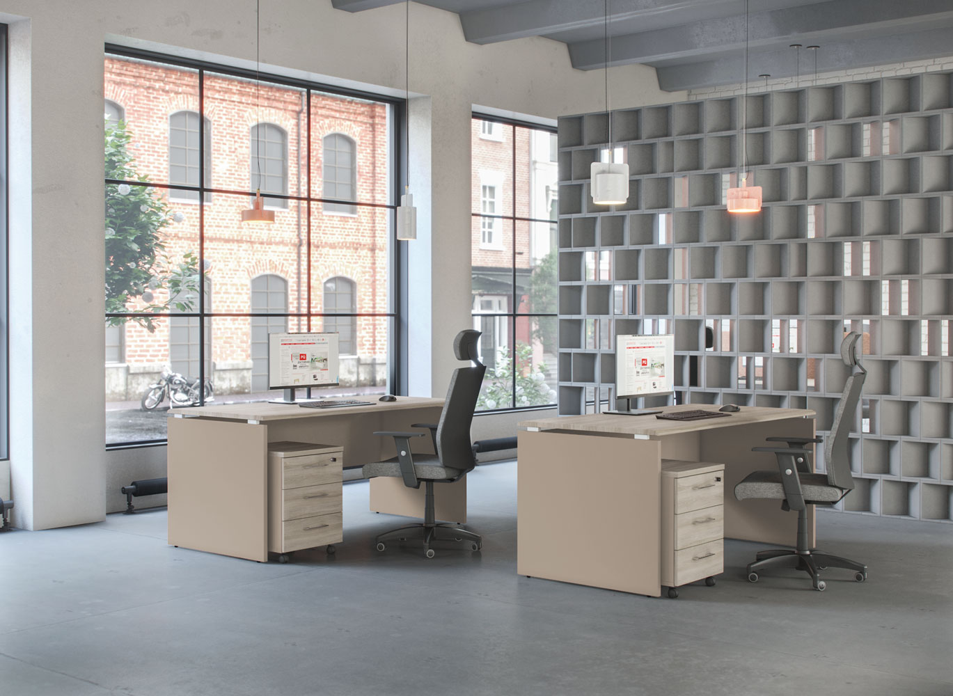 Широкий модельный ряд письменных и эргономичных столов на опорах из ЛДСтП Оригинальное соединение столешниц с боковыми опорами столов через проставки контрастного серого цвета Три линейки письменных столов глубиной 60, 70 и 80 см. Рабочие поверхности столов изготовлены с применением высокопрочной пленки ПВХ методом вакуумного прессования Наличие большого количества дополнительных элементов серии (столы для переговоров, брифинги, угловые элементы, настольные экраны, надстройки) для организации современного офиса Три складских линейки шкафов высотой 205 см, 127 см и 85 см Шкафная группа представлена в 3-х типоразмерах ширины: широкие 90 см, узкие 45 см и 60 см. Конструктивная возможность комплектации шкафов разнообразными дверями Стеклянные двери в двух вариантах исполнения – в металлической рамке с матовым стеклом и без металлической рамки с прозрачным стеклом Возможность комбинирования деталей разных декоров в одном изделии Складская программа, сформированная в двух популярных декорах