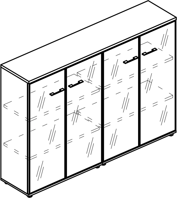 Шкаф средний комбинированный со стеклянными дверьми в алюминиевой рамке (топ ДСП) Alta МР 9493
