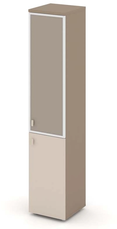 Шкаф высокий узкий правый (1 низкий фасад ЛДСП + 1 средний фасад стекло лакобель Satin в раме) ESTETICA ES.SU-1.2R(R) I/U