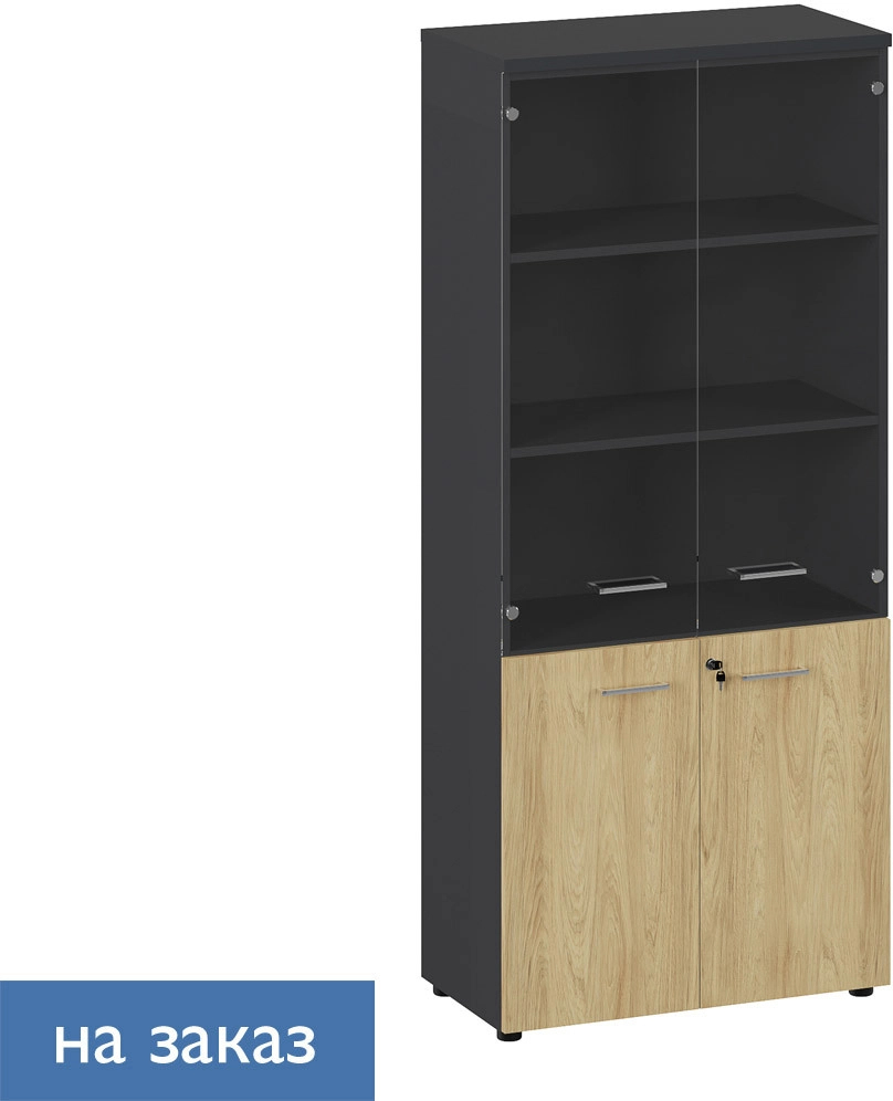 FLEX Шкаф высокий комби стекло ГИКОРИ/ГРАФИТ