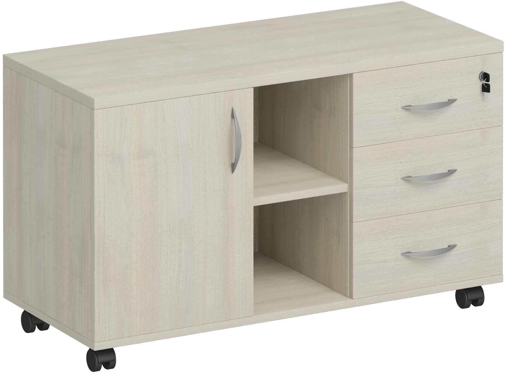 - Верхний ящик тумбы запирается на замок