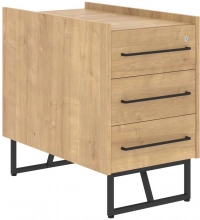 Каркас тумбы из ЛДСП т.18мм с кромками ПВХ т.0,45 и 2мм. Комплектуется 3-мя ящиками. Верхний ящик с замком. Направляющие шариковые. Ручка металлическая с межцентровым расстоянием 320 мм, цвет - черный. Каркас тумбы устанавливается на металлокаркас из профиля трубы 20х20х1,5мм, цвет металлокаркаса - черный