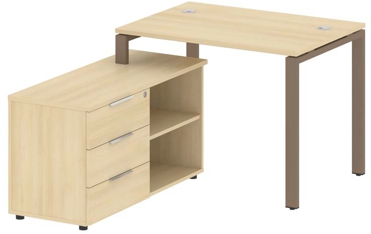 Metal System Рабочая станция на П-образном м/к/мокко с опорной тумбой левая БП.РС-СТС-2.1 Л