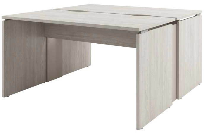 Стол-тандем на 2 рабочих места, опоры ЛДСП с проставкой. На длинной стороне столешниц сделаны вырезы для организации кабель-менеджмента.