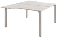 Стол-тандем на 2 рабочих места с эргономичными столешницами. Опоры стола - труба сечением 50*50. Траверсы заглублены на 196 мм. Между столешницами зазор 32 мм для установки фронтального экрана. На длинной стороне столешниц сделаны вырезы для организации кабель-менеджмента. Цвет металлокаркаса "Кашемир" и "Трюфель", текстура – муар.