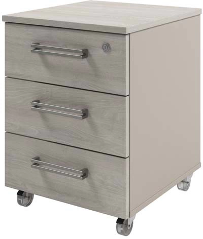 Тумба подкатная, 3 ящика, направляющие скрытого монтажа с доводчиками. Верхний ящик с замком