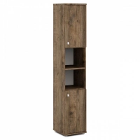 Шкаф высокий узкий, полуоткрытый, с 5 полками. Состав: V-55 + V-010. V-55: Верхний топ и низ выполнены из плиты толщиной 25 мм. Кромка по переднему торцу верхнего топа и низа - ПВХ 2 мм. Кромки остальных срезов ПВХ 0,4 мм. Боковые стенки выполнены из ЛДСП толщиной 16 мм. Задняя стенка выполнена из ХДФ толщиной 3 мм, облицованного с одной стороны цветом "Орех Вирджиния". Стеллаж имеет 5 полок и 6 пролетов. Полки расположены на расстоянии 341 мм от верхнего и от нижнего топа. Расстояние между полками - 327 мм. Полки опорные (горизонтали) 4 штуки, выполнены из ЛДСП толщиной 25 мм. Размеры: ширина - 376 мм, глубина - 420 мм. Средняя полка съемная. В качестве крепежной фурнитуры используются эксцентриковые стяжки, позволяющие многократно собирать и разбирать мебель без потери жесткости соединений и исключающие отверстия на лицевых поверхностях. Эксцентрики закрываются заглушками в цвет плиты. Стеллаж оборудован четырьмя регулируемыми по высоте пластиковыми опорами серого цвета, диаметром 50 мм, высотой 27 мм, позволяющими компенсировать неровности пола. Регулировка ±10 мм. Материал опор - пластик серый. V-010: Двери распашные, низкие. Фасады выполнены из плиты толщиной 16 мм, высота - 702 мм, крепление на 2-х петлях. Ручка – кнопка с поднимающимся язычком, размером 15 мм х 30 мм. Материал - цинковое литье. Цвет - "Хром матовый".