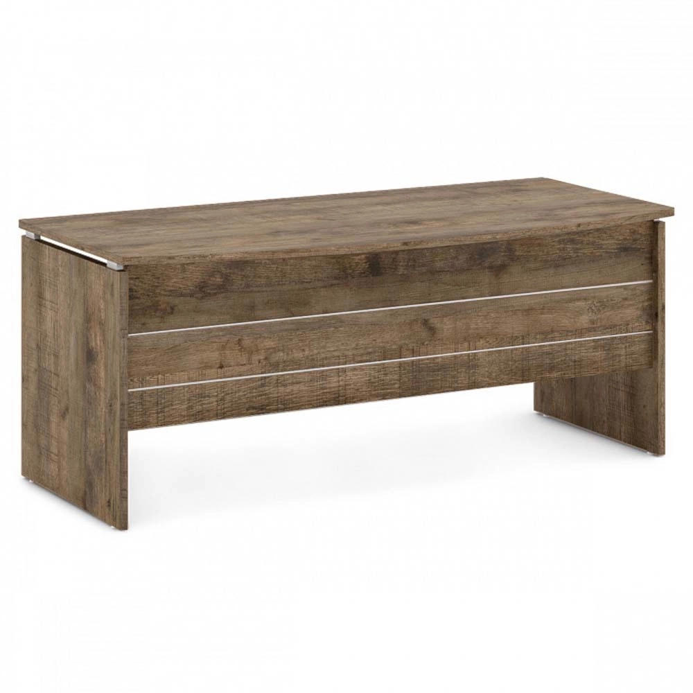 Стол для руководителя. Возможно устанавливать с брифингом V-890, V-891, V-892. Каркас стола изготовлен из ЛДСП в цвете "Орех Вирджиния", облицован противоударной кромкой ПВХ 2 мм и 0,4 мм. Столешницы и боковины столов изготовлены из ЛДСП 25 мм, соединительный щит - из ЛДСП 16 мм и облицован врезным алюминиевым профилем. Между опорами и столешницей зазор, образованный пластиковыми проставками серого цвета, размером: длина 64 мм, ширина 20 мм, высота 22 мм. Внешний край дугообразный. Опоры: регулируемые, серый пластик. Диаметр 25 мм, высота 8 мм. Регулировка ±15 мм.