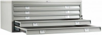 Предназначена для удобного хранения документов формата А0 (геологоразведочные карты, планы и конструкторские чертежи, различные коллекции) телескопические направляющие обеспечивают свободный и плавный ход ящиков даже при полной загрузке система полного выдвижения ящиков выпускаются модели с пятью и десятью ящиками под формат А0 возможность установки промежуточной секции из 5 ящиков, увеличивающей емкость модуля до 15 ящиков ящики снабжены прижимной планкой и двумя разделителями под более мелкий формат поставляются в собранном виде