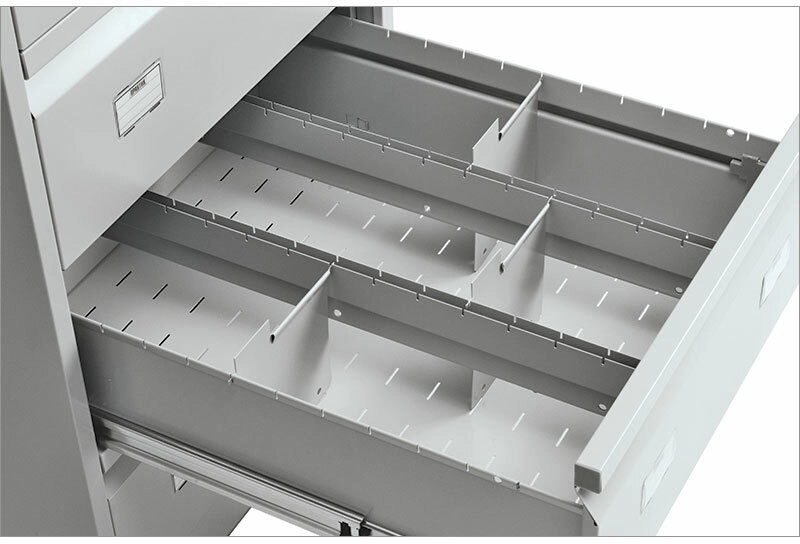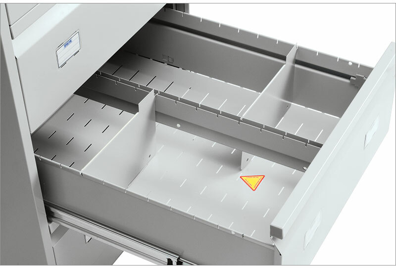 Предназначен для систематизации и удобного хранения документации. изделия сертифицированы на соответствие требованиям ГОСТ 16371-2014 телескопические направляющие выдвижных ящиков система полного выдвижения ящиков надежность подтверждена промышленным испытанием 50000 открываний, при нагрузке на ящик 30 кг оборудованы антиопрокидывающим устройством, не позволяющим одновременно выдвигать более чем один ящик комплектуются центральным замком ПРАКТИК (2000 комбинаций), с возможностью смены цилиндра и мастер-ключом поставляются в собранном виде картотеки AFC-06 возможно хранение документов или карточек формата А5 и А6, CD и DVD-дисков Опция: разделители и пластины имеют цельносварную конструкцию, увеличивающую жесткость картотеки опция: окраска передних панелей в другие цвета из палитры производителя, +10% к стоимости (при заказе от 50 шт.) Аксессуары: Разделитель продольный для ящика AFC-06 Разделитель поперечный большой КП AFC-06/2 (2 ячейки, для формата А5) Разделитель поперечный средний КП AFC-06/3 (3 ячейки, для формата А6) Разделитель поперечный малый КП AFC-06/4 (4 ячейки, для формата А6)