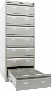 Предназначен для систематизации и удобного хранения документации. изделия сертифицированы на соответствие требованиям ГОСТ 16371-2014 телескопические направляющие выдвижных ящиков система полного выдвижения ящиков надежность подтверждена промышленным испытанием 50000 открываний, при нагрузке на ящик 20 кг оборудованы антиопрокидывающим устройством, не позволяющим одновременно выдвигать более чем один ящик комплектуются центральным замком ПРАКТИК (2000 комбинаций), с возможностью смены цилиндра и мастер-ключом картотеки AFC-07 – используются для хранения документов или карточек формата А5 в комплект поставки входит: 7 разделителей, 14 компрессионных пластин поставляются в собранном виде опция: окраска передних панелей в другие цвета из палитры производителя, +10% к стоимости (при заказе от 50 шт.) имеют цельносварную конструкцию, увеличивающую жёсткость картотеки Аксессуары: Пластина компр. для AFC-07