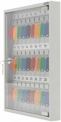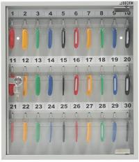 Предназначены для упорядоченного размещения и защиты от несанкционированного использования ключей. Размещаются стационарно на стене, в корпусе предусмотрены отверстия для крепления Изготовлены из стали 0,9 мм Оснащены металлическими крючками для навешивания ключей и прозрачной дверцей Ключевой замок Количество крючков для ключей - 30шт. В комплект ключниц входят пластиковые цветные брелоки, рассчитанные на количество ключей и самоклеящиеся номерки