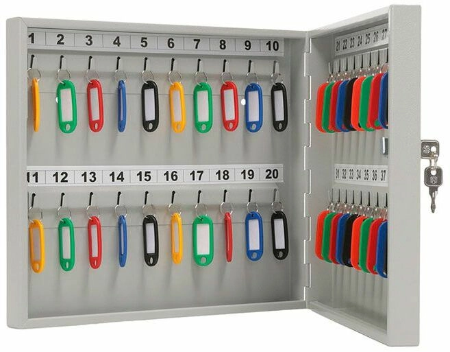 Предназначены для упорядоченного размещения и защиты от несанкционированного использования ключей. Размещаются стационарно на стене, в корпусе предусмотрены отверстия для крепления Изготовлены из стали 0,9 мм Оснащены металлическими крючками для навешивания ключей Ключевой замок Количество крючков для ключей - 40шт. В комплект ключниц входят пластиковые цветные брелоки, рассчитанные на количество ключей и самоклеящиеся номерки
