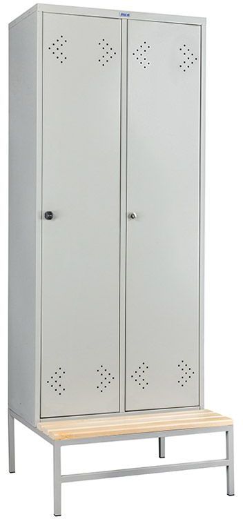 Используется для оснащения раздевалок в спортивных центрах и на производственных предприятиях. Подставки LS и подставки со скамьей предназначены для установки на них шкафов для раздевалок серии LS. Предусмотрено крепление шкафа к подставке. Каркас изготовлен из металла 1.5 мм и профильной трубы сечением 20х20 мм. Пластиковые декоративные заглушки черного цвета (с резьбой для установки Винтов Strong MS регулировочных). Винты приобретаются отдельно. Материал сидений: шлифованная сосна толщиной 25 мм х80 мм, покрытая лаком для защиты древесины от пагубного воздействия влаги, щелочных и солевых растворов. Цвет каркаса: серый полуматовый (RAL 7038). Тип покрытия: порошковое, влагоустойчивое. Поставляются в разобранном виде.