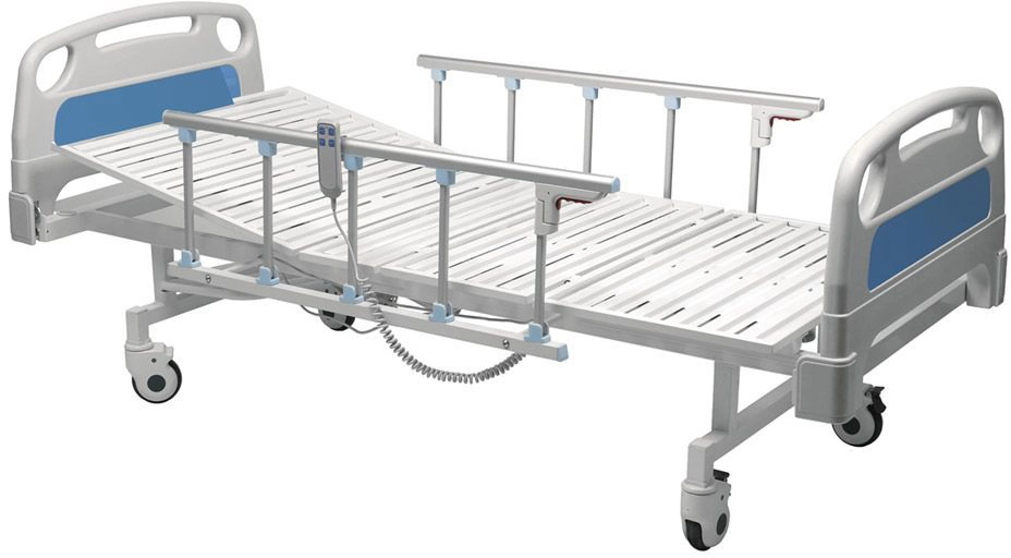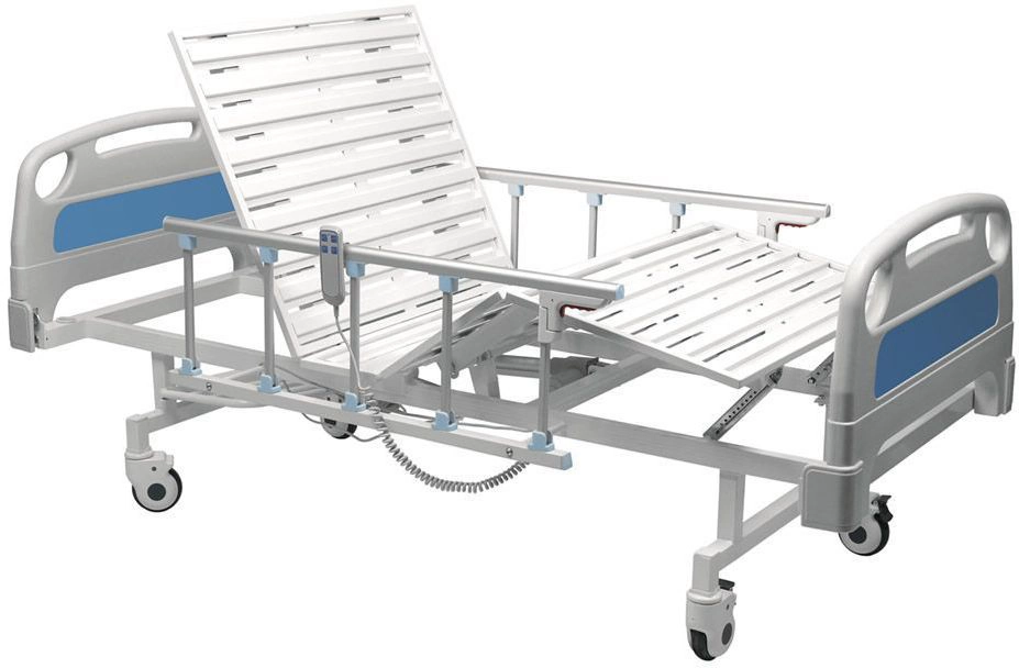 Функциональная медицинская кровать предназначена для ухода, диагностики, лечения и наблюдения за пациентом в стационарных медицинских учреждениях, и в домашних условиях четырехсекционное металлическое реечное ложе регулируется с помощью электроприводов, каркас изготовлен из профильной трубы прямоугольного сечения, покрыта эпоксидно-порошковой краской; Регулировка углов наклона секций: - спинной – от 0° до 80° с помощью электроприводов - тазобедренной – от 0° до 45° с помощью электроприводов - ножной – от 0° до 20° механизмами «Rastomat» установлена на 4 самоориентирующиеся колеса диаметром 125 мм, 2 колеса с тормозным устройством, покрытие колес серая резина (не оставляющая следов на полу); спинки быстросъёмные, изготовлены из износоустойчивого ударопрочного пластика со скругленными атравматическими краями и углами; боковые алюминиевые складные ограждения; Дополнительные опции: Штанга для подвески ручных опор МД 2 Рама Балканского КМ Н Матрац медицинский Подставка для судна КМ Штатив медицинский КМ МШ-1 Штатив медицинский КМ МШ-2