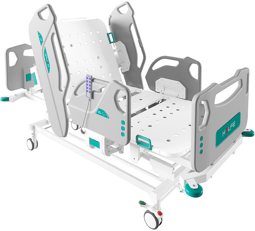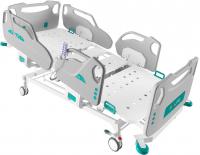 Функциональная электрическая медицинская кровать может использоваться, как в палатных отделениях, так и в отделениях реанимации и интенсивной терапии, а также в домашних условиях четырехсекционное металлическое перфорированное ложе регулировка спинной, тазобедренной секций и высоты ложе с помощью электроприводов положение Тренделенбург/Антитренделенбург каркас изготовлен из профильной трубы прямоугольного сечения и покрыт эпоксидно-порошковой краской спинки быстросъемные из износоустойчивого ударопрочного пластика со скругленными атравматическими краями и углами боковые ограждения в количестве четырех откидывающихся элементов из износоустойчивого ударопрочного пластика с уровнем угла наклона ограничитель – четыре прорезиненных бампера диаметром 100 мм четыре самоориентирующихся колеса диаметром 125 мм с функцией центрального тормоза три положения педали (все колеса разблокированы, одно колесо заблокировано, все четыре колеса заблокированы) ограничители матраца крючки для крепления мочеприемников Регулировка углов наклона секций: - спинной – от 0° до 73° с помощью электропривода - тазобедренной – от 0° до 26° с помощью электропривода - ножной – от 0° до 20° механизмами «Rastomat» - регулировка высоты ложа от уровня пола – от 490 до 810 мм с помощью электропривода - тренделенбург/антитренделенбург - 12°/+12° Дополнительные опции: Штанга для подвески ручных опор МД 2 Матрац медицинский Штатив медицинский КМ МШ-1 Штатив медицинский КМ МШ-2