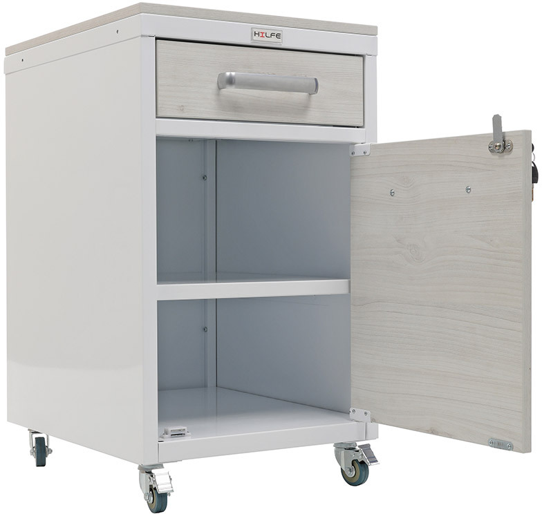 Предназначены для хранения в больницах и других медицинских учреждениях личных вещей, одежды, документы, а также могут использоваться как приставной элемент мебели у рабочего стола или кровати. корпус изготовлен из металла, толщина 0.8 фасады выполнены из ЛДСП толщиной 16 мм, лазерная кромка толщиной 2 мм с полимерным функциональным слоем, обеспечивает эффект нулевого шва и улучшает влагостойкость и термостойкость элементов фасада топ выполнен из ЛДСП 16 мм телескопические направляющие обеспечивают свободный и плавный ход ящиков даже при полной загрузке, позволяют выдвигать ящик на всю длину и использовать 100% пространства максимальная нагрузка на полку 15 кг, на верхний ящик 7 кг оборудован эргономичными алюминиевыми ручками оборудованы колесами 50 мм, два снабжены стопором поставляются в разобранном виде высота указана с установленными колесами - 50 мм Скачать техническое задание в формате .PDF