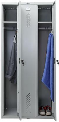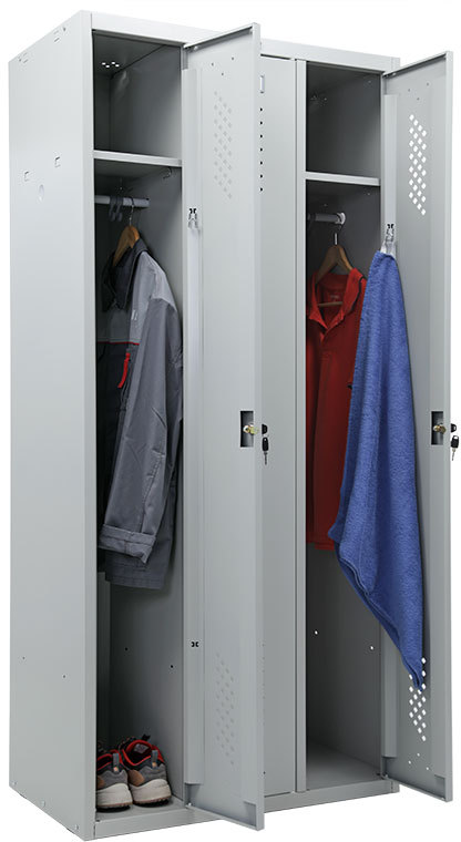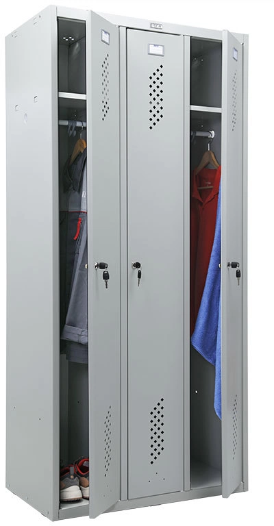 Предназначены для хранения рабочей одежды в медицинских и других помещениях. способ сборки: саморезы ключевой замок «Практик» (2000 комбинаций) с возможностью смены цилиндра + мастер-ключ вентиляционные отверстия конструкция шкафов позволяет скреплять их между собой поставляются в разобранном виде опции: комплектация замком PL (вместо ключевого замка устанавливается бесключевой замок Euro-locks A129 с устройством под навесной замок)