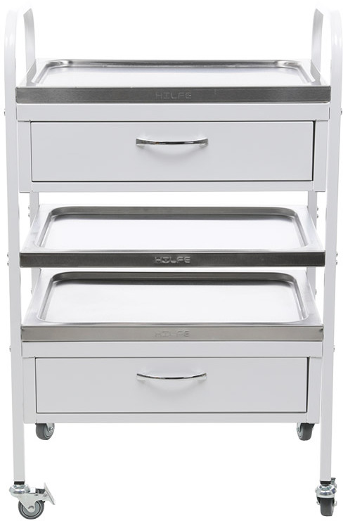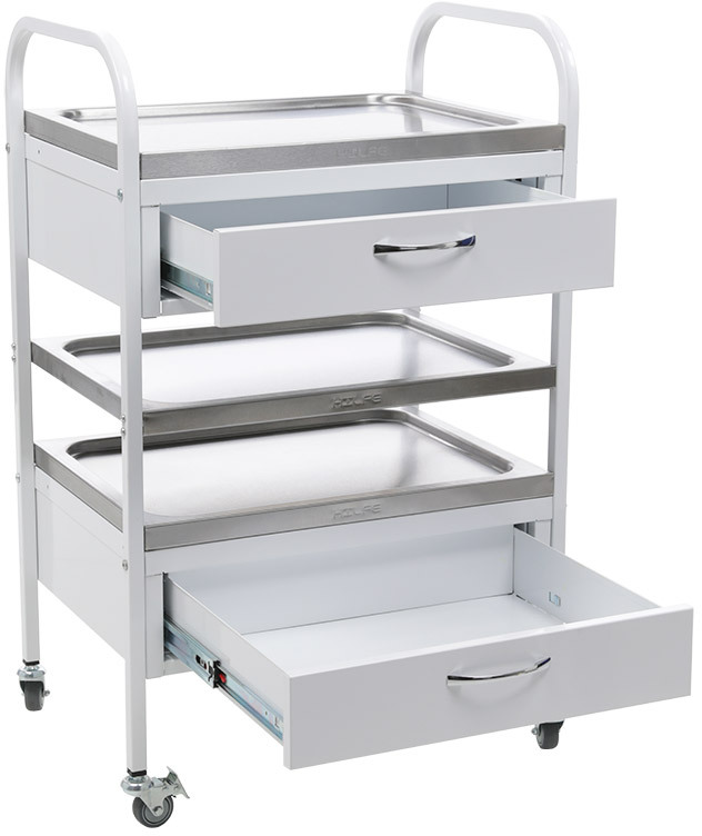 Предназначены для размещения инструмента, лекарственных препаратов и приборов. каркас столика изготовлен из профильной трубы квадратного сечения. 20х20х1,5 мм, покрытой эпоксидно-порошковой краской полки изготовлены из нержавеющей стали 1,0 мм. методом «прессовой вытяжки» поверхность столика устойчива к ударам, сколам, средствам дезинфекционной обработки способом протирания столик процедурный имеет 4 колеса из немаркой резины, D=50 мм. Два колеса снабжены тормозом нагрузка на полку - не более 15 кг нагрузка на ящик - не более 15 кг поставляются в разобранном виде Скачать техническое задание в формате .PDF