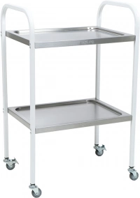 Предназначены для размещения инструмента, лекарственных препаратов и приборов. каркас столика изготовлен из изготовлен из профильной трубы квадратного сечения. 20х20х1, 5 мм, покрытой эпоксидно-порошковой краской полки изготовлены из нержавеющей стали 1,0 мм методом «прессовой вытяжки» поверхность столика устойчива к ударам, сколам, средствам дезинфекционной обработки способом протирания столик процедурный имеет 4 колеса из немаркой резины, D= 50 мм. Два колеса снабжены тормозом нагрузка на полку - не более 15 кг поставляются в разобранном виде Скачать техническое задание в формате .PDF