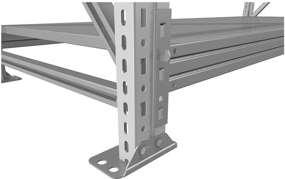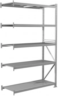 Предназначен для использования как на складах и производствах, так и в небольших помещениях – гаражи, торговые точки, кладовые Полочные стеллажи представляют собой, легко собираемую и разбираемую конструкцию, которая состоит из вертикальных рам, закрепленных на них горизонтальных балок и разборных полок Крепление балки к стойкам безболтовое. Балка крепится к стойке на зацепах и закрепляется фиксатором, предохраняющим балку от случайного подъема. Балки могут переставляться по высоте с шагом 50 мм Стойки изготовлены из оцинкованного металлического профиля 55х47мм Среднегрузовой стеллаж MS Pro 5 ярусов с металлическим настилом Нагрузка на секцию до 4000кг, на ярус 500 кг
