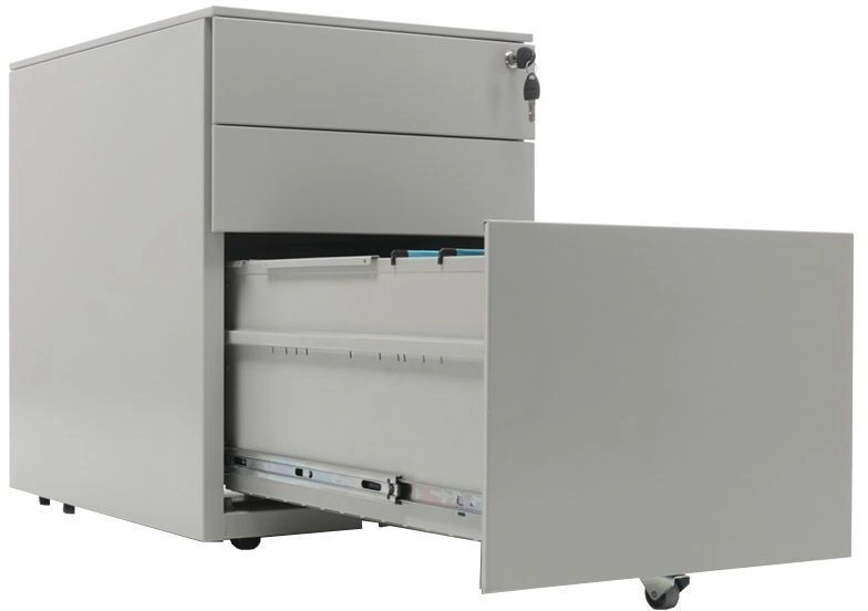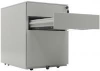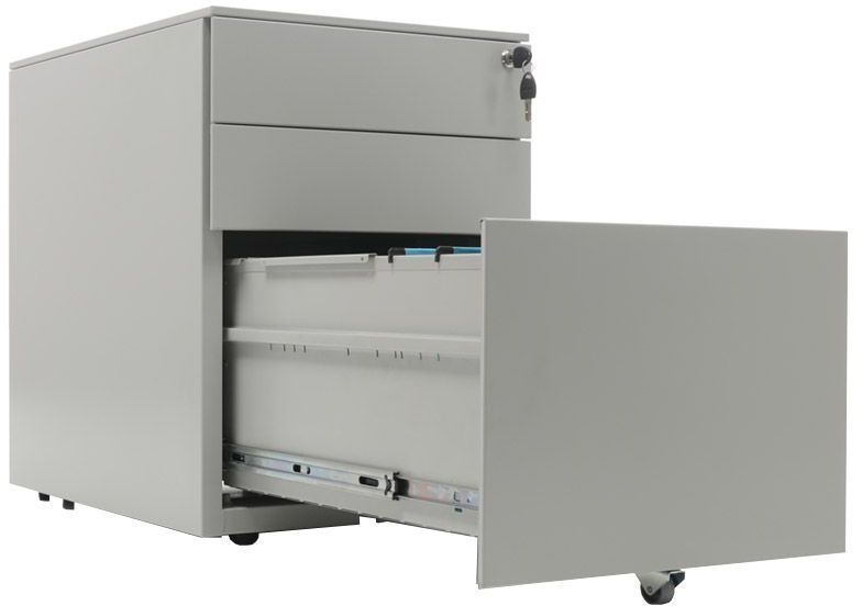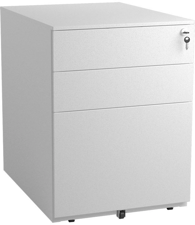 Предназначены для систематизации и удобного хранения документации и канцелярских принадлежностей. Идеально подходят к офисным столам для организации рабочего пространства. Жесткий сварной корпус, П-образной формы Три типоразмера ящиков: файловые, канцелярский и канцелярский уменьшенный Файловые ящики оборудованы телескопическими направляющими, обеспечивают свободный и плавный ход ящиков даже при полной загрузке, позволяют выдвигать ящик на всю длину и использовать 100% пространства Канцелярские ящики имеют роликовые направляющие, не полное выдвижение Габариты файловых ящиков специально рассчитаны для хранения подвесных папок формата А4 и формата foolscap (в комплекте планка для подвеса папок) или папок «Корона», канцелярские ящики идеально подходят для хранения офисных и личных вещей Антиопрокидывающее устройство, не позволяющее одновременно выдвигать более чем один ящик Центральный ключевой замок «Практик» (2000 комбинаций) Нагрузка на ящики для канцелярских принадлежностей – 10 кг, на нижние файловые – 25 кг (в основании файлового ящика установлено колесо, увеличивающее грузоподъёмность) Возможность установки на выравнивающие опоры или колеса Возможность окраски в RAL-9005 (муар) Возможна поставка готовых каркасов тумб (без топа и лицевых панелей) Поставляются в собранном виде Опции: пластиковые лотки и металлический ящик для канцелярских принадлежностей и других предметов. Возможность комбинирования цветов: корпус + фасады ящиков и крышка (конструкция тумбы металл+металл). Или отделка фасадов ящиков и крыши тумбы ламинированной плитой ЛДСП Скачать техническое задание в формате .PDF